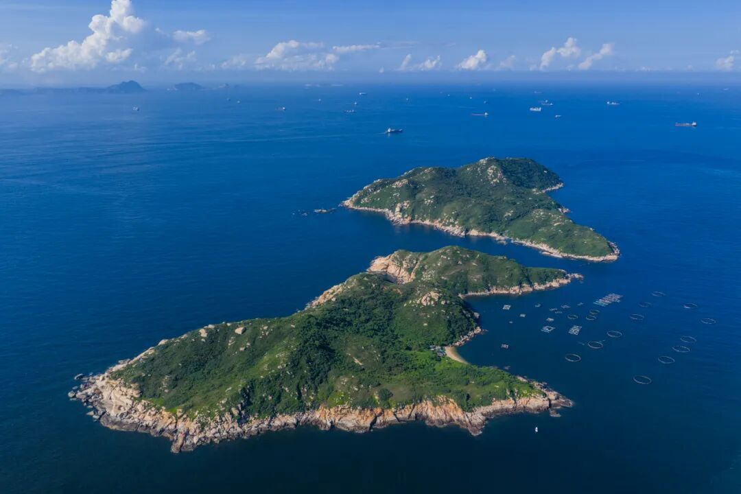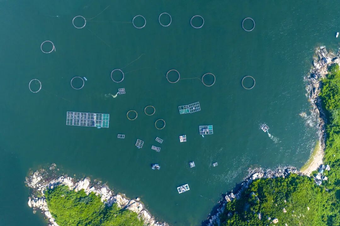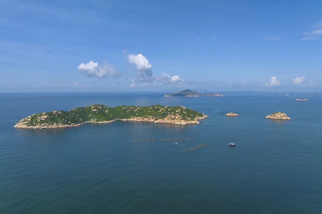 蓝色的海上牧场,与岛上葱郁的植被、嶙峋的礁石共同构成一幅生动的图景,回荡着一曲人与海和谐共生的海上牧歌。