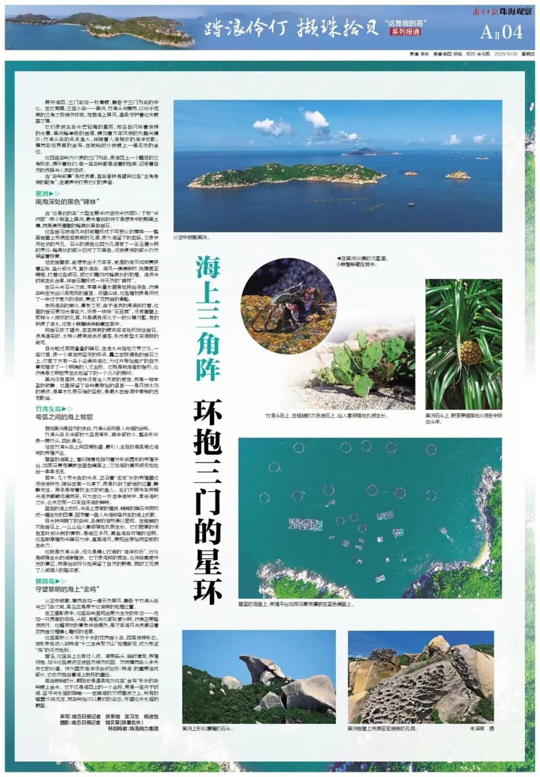 近日,中共珠海市委宣传部携手南方报业传媒集团珠海分社策划,珠海格力集团特别支持的《踏浪伶仃 撷珠拾贝——“这是我的岛”》系列报道推出了最新一期报道《海上三角阵 环抱三门的星环》。